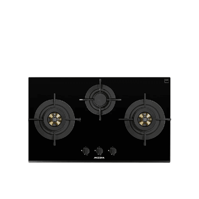 Kompor Gas Tanam 90cm 3 Burner dengan desain elegan dan efisiensi tinggi untuk dapur modern.