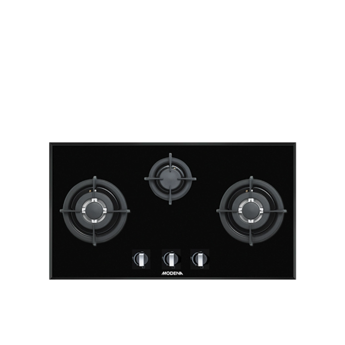Kompor Gas Tanam 90cm 3 Burner Aluminum dengan desain elegan dan efisiensi tinggi untuk dapur modern.
